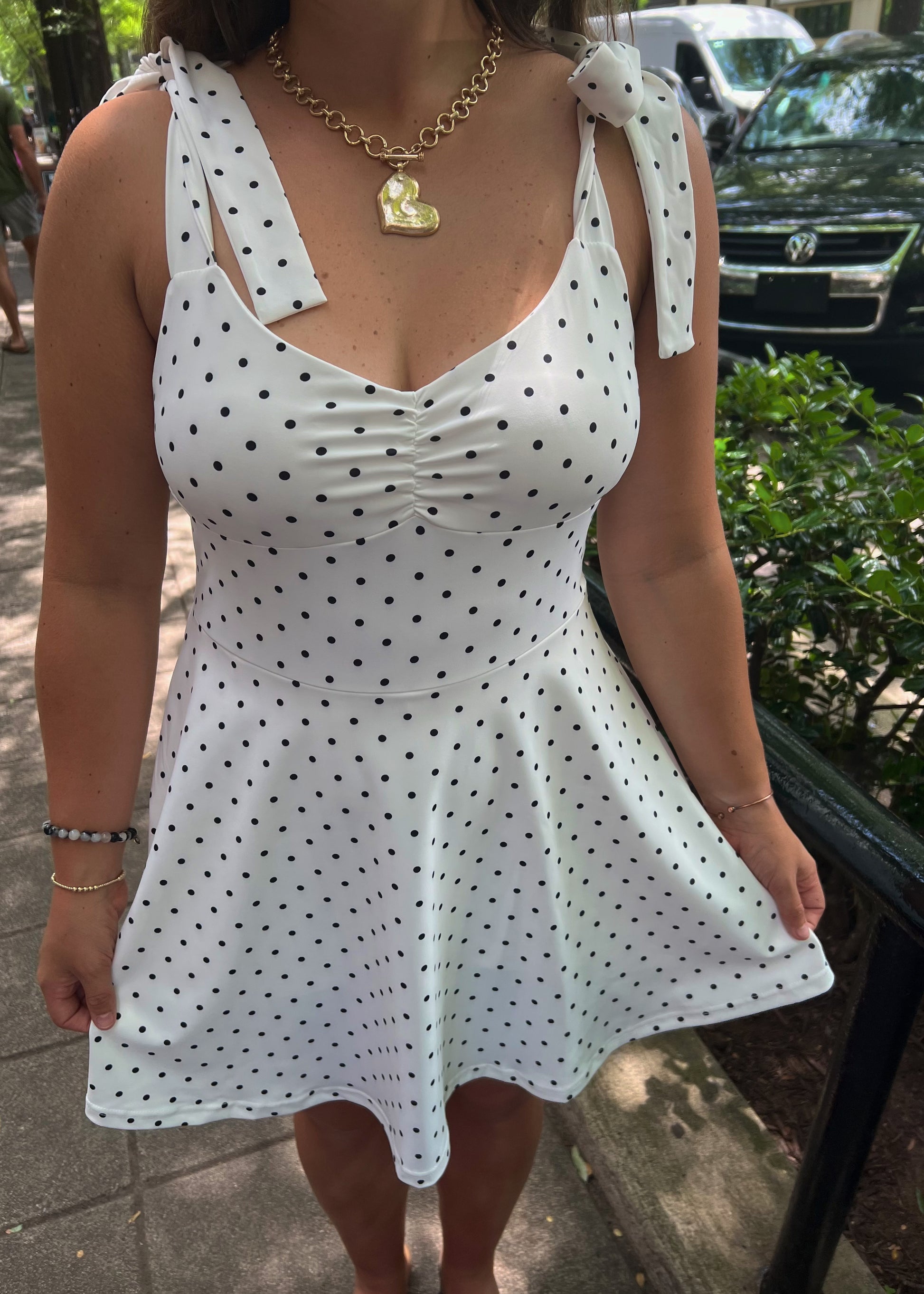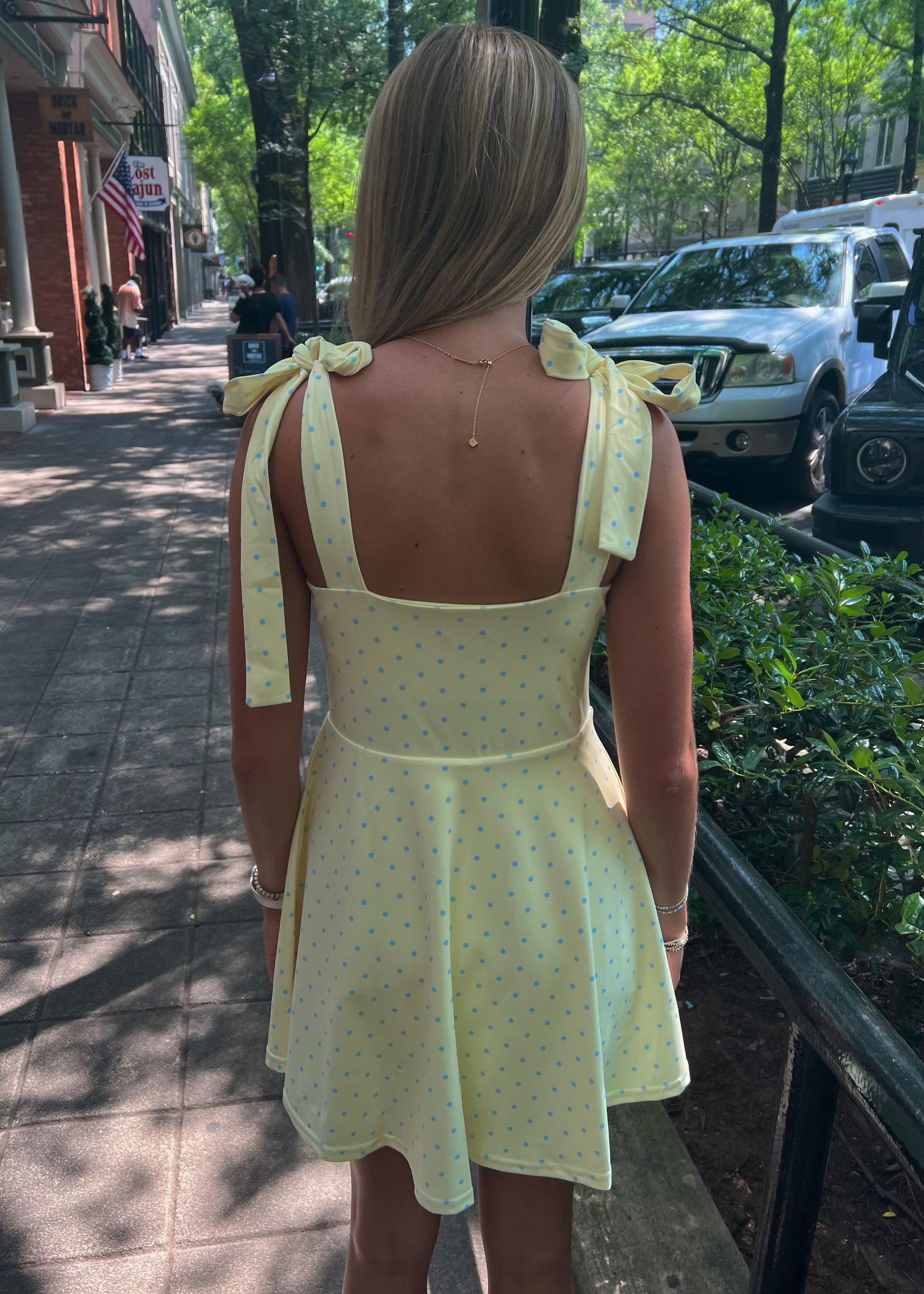 Adjustable bow straps, built in shorts with a pocket underneath
